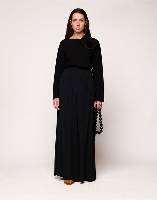 DOUUOD Camicia in Cady Fluido con Sciarpa Staccabile Nera