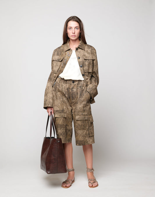 DOUUOD Borsa Shopping Giulia in Pelle Martellata Marmo
