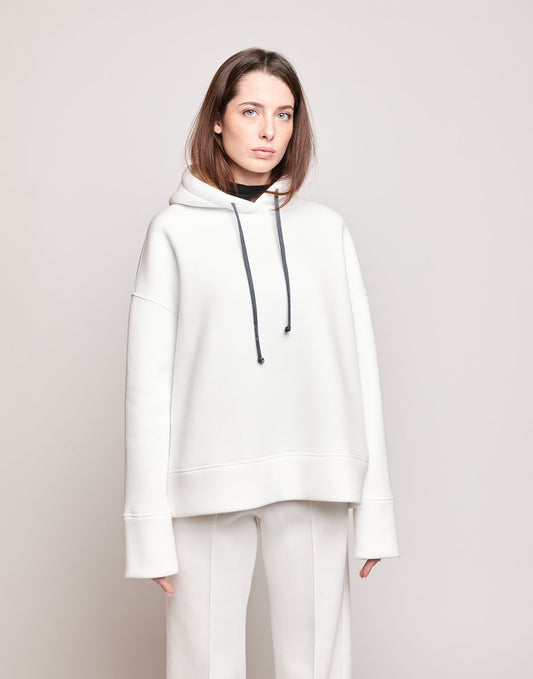 DOUUOD Felpa con Cappuccio in Cotone con Logo sulla Manica Panna