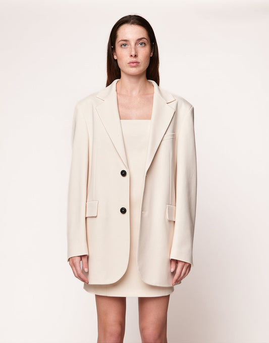 DOUUOD Giacca Over Monopetto in Punto Milano Compact Burro