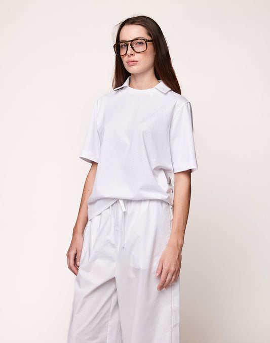 DOUUOD T-shirt Manica Corta con Collo Rimovibile in Popeline Off White
