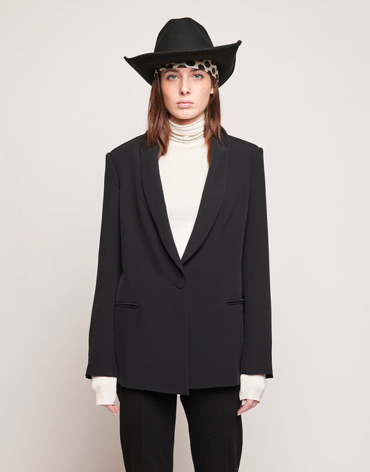 DOUUOD Giacca Smoking in Cady Fluido a un Bottone Nera