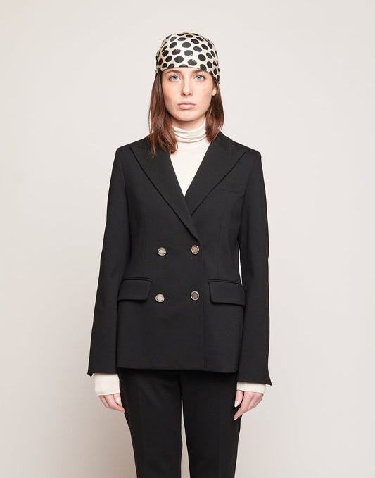 DOUUOD Blazer Doppiopetto in Punto Milano con Bottoni in Metallo Nero