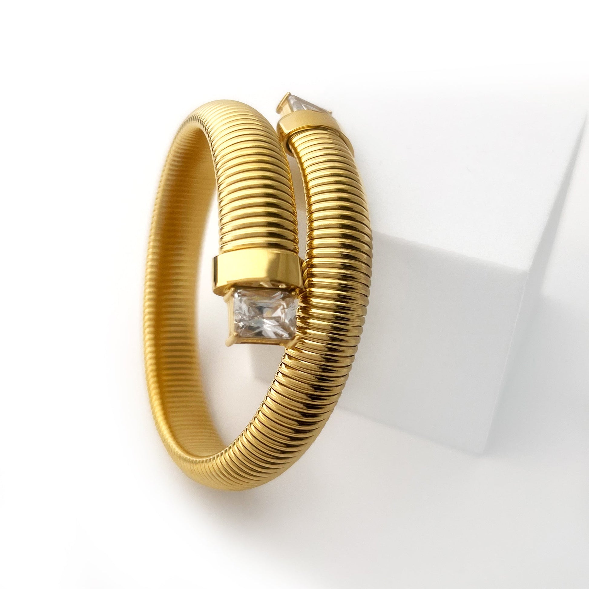 Realizzato in acciaio inossidabile di alta qualità e placcato in oro 18k autentico con tecnologia PVD, questo bracciale garantisce resistenza alla corrosione, all'acqua e alle allergie.