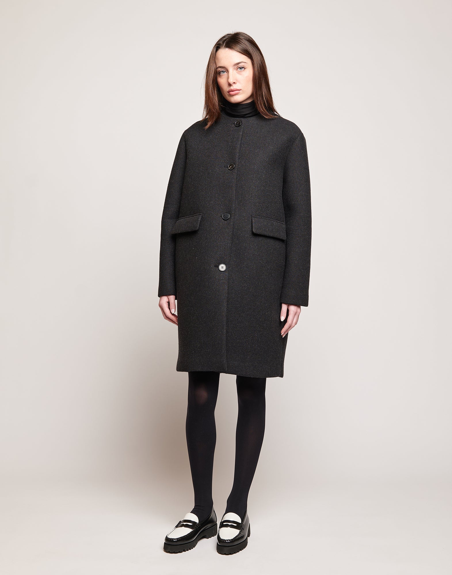Il cappotto Dolomite nasce da un tessuto recuperato dagli archivi del brand e rinnovato per garantire performance ancora più elevate. Il bonded tecno neoprene, dall’aspetto laniero effetto tricotina grigia ma dall’anima tecnica, rende questo capo versatile e camaleontico. Da abbinare ad un semplice collo in ecopelliccia, che trasforma il modello, passando da elegante cappottino bon ton a capo prezioso e avvolgente.