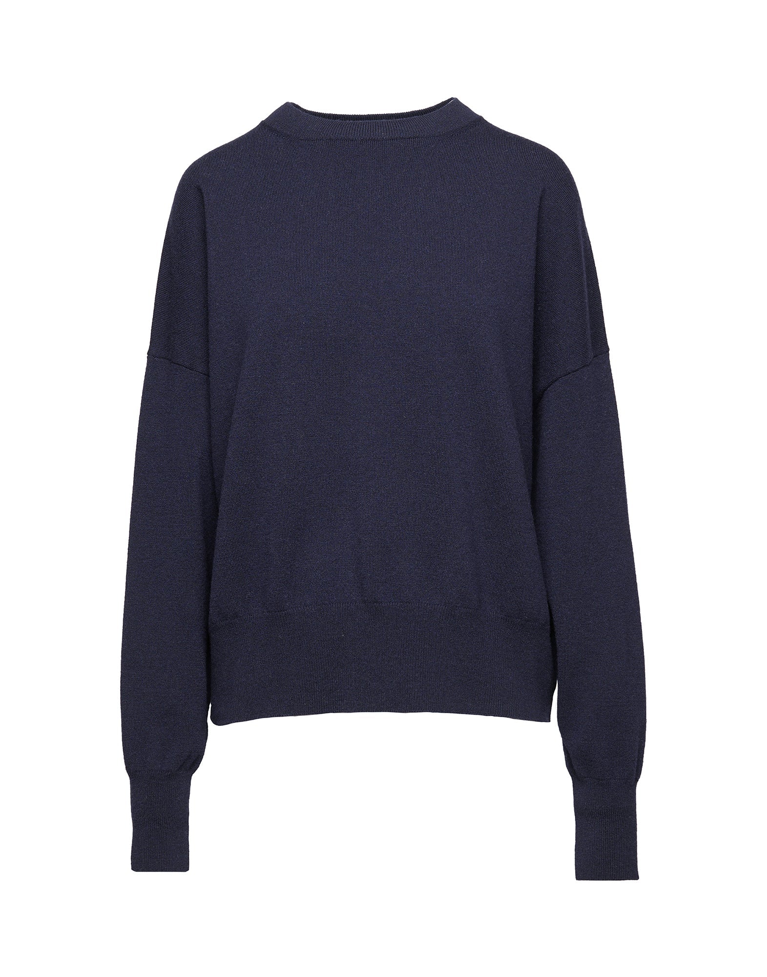 DOUUOD Maglione Kimono Girocollo in Lana e Cashmere Oltremare