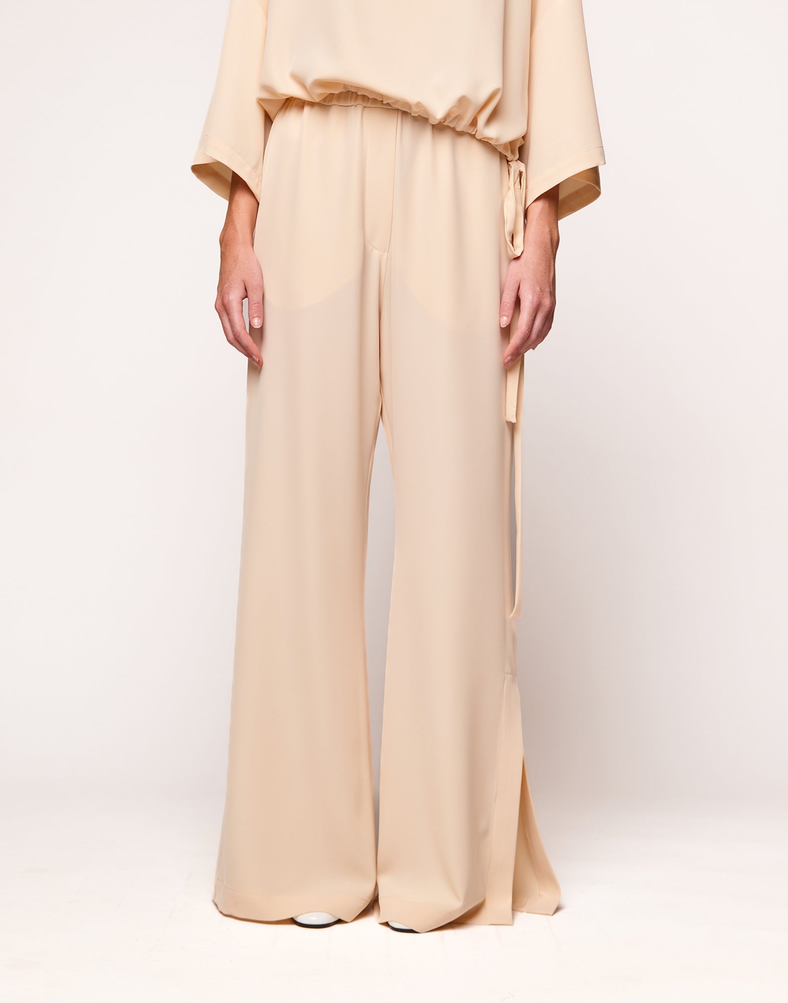 DOUUOD Pantaloni con Spacchi in Cady Fluido Vaniglia