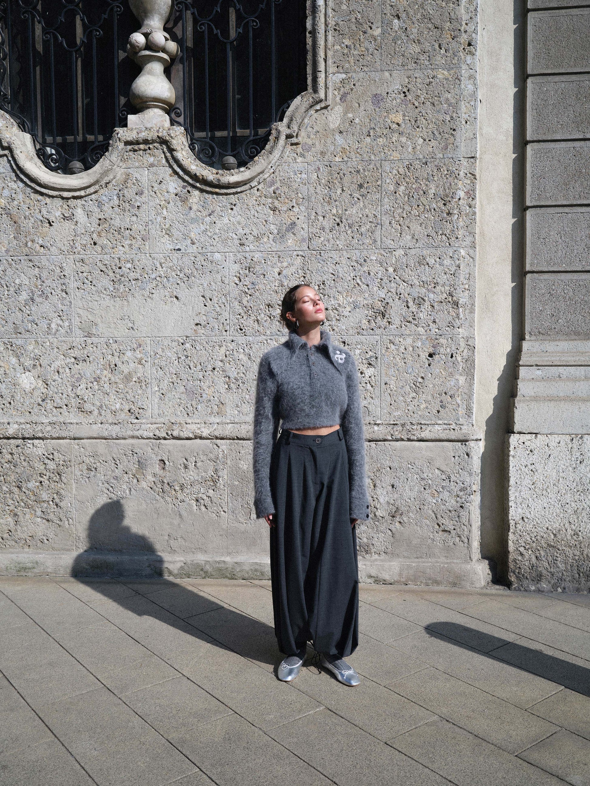 Questo maglione corto in morbida e comoda lana mohair e alpaca è perfetto per impreziosire qualsiasi outfit chic. Il tocco raffinato è dato dal logo Art, elegantemente ricamato sul colletto.